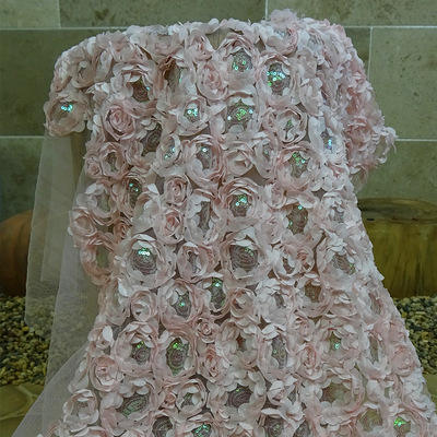 Țesătură de nuntă de trandafiri 3d covor covor moale de mireasă țesătură din dantelă cu dantelă moale cu pene moale, împerecheată cu paiete strălucitoare, florile sunt tridimensionale și pline, cu o notă delicată și luxoasă. Este potrivit pentru rochiile de mireasă ale mireselor, rochiile de seară, voalul și decorațiunile de nuntă, adăugând o atingere romantică și elegantă. Cu un design extrem de elastic și respirabil, acesta poate fi tăiat după cum este necesar și este o alegere ideală pentru livrările de nuntă personalizate de înaltă calitate.