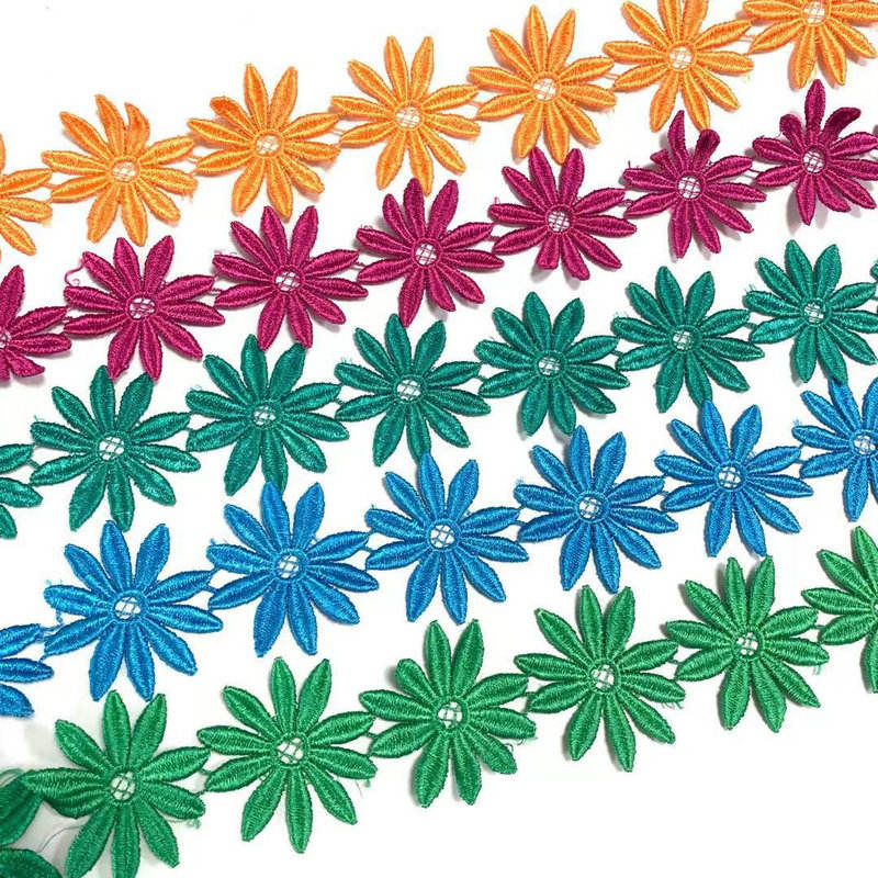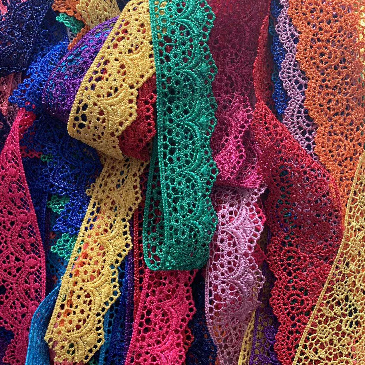 Dantelă personalizată din poliester broderie îngustă dantelă multi culori confecționate din material poliester de înaltă calitate, cu măiestrie fină de broderie, are culori bogate și lățime reglabilă. Este potrivit pentru decorarea îmbrăcămintei pentru femei, a îmbrăcămintei pentru copii și a obiectelor de uz casnic