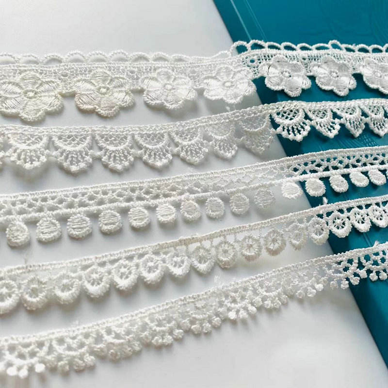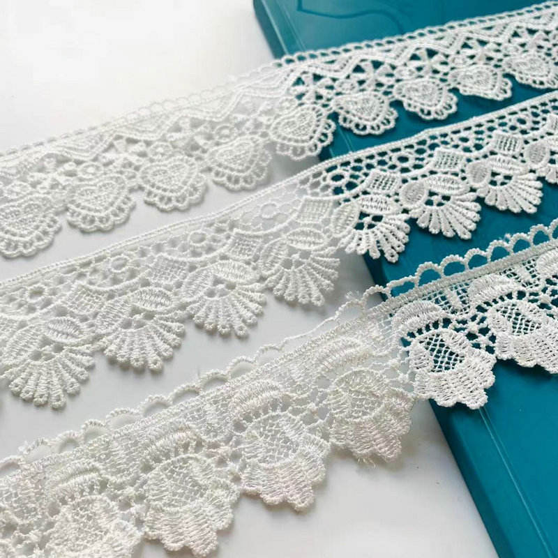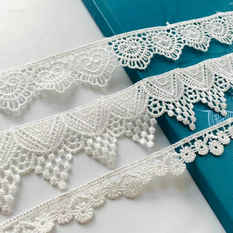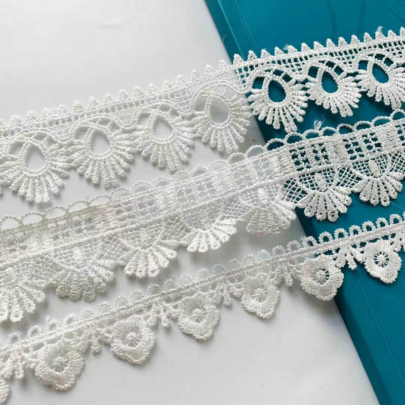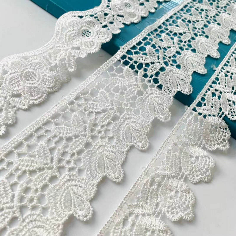 Dantelă de flori Dantelă 100% din poliester dantelă chimică rafinată Model floral Tehnica chimică scobită face ca textura să fie ușoară, moale și respirabilă. Este potrivit pentru decorarea în îmbrăcăminte, textile de casă, rochii de mireasă etc., oferind o varietate de culori și lățimi din care să alegeți. Este lavabil și durabil și acceptă designul personalizat.
