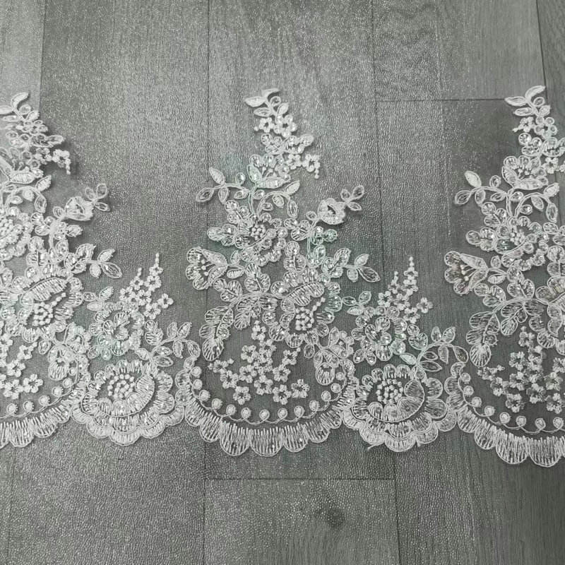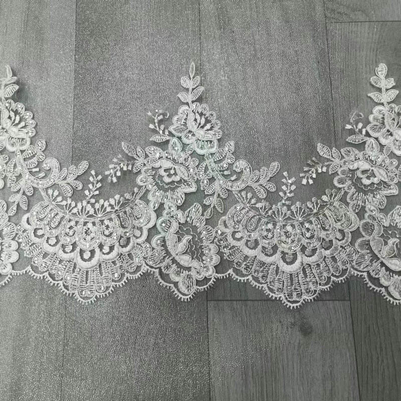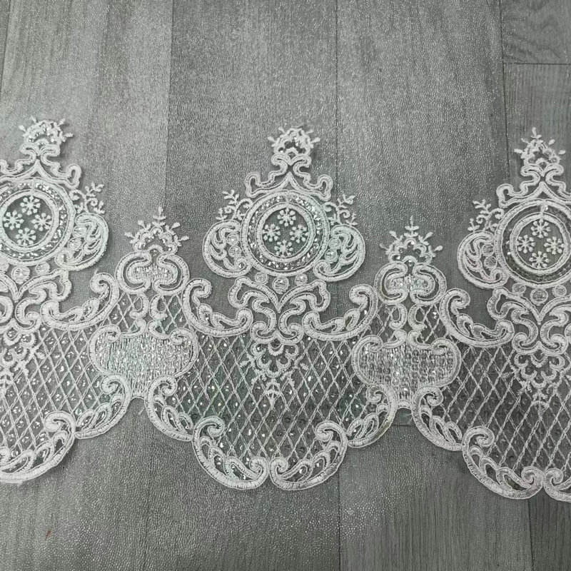 Tăiet de dantelă de mireasă albă de lux din dantelă franceză din dantelă brodată pentru mireasă pentru rochie de mireasă