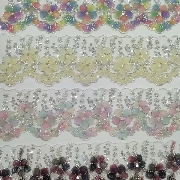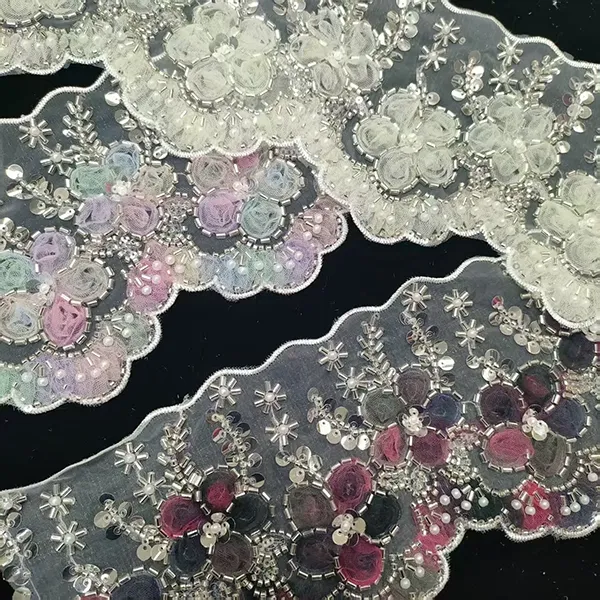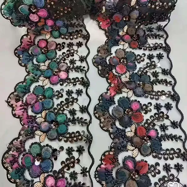 Dantela brodata multicolora cu plasa 3D Flori Panglica Tub cu margele Dantela brodata cu coduri de bare