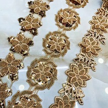 este cele mai recente modele de țesătură din dantelă de înaltă calitate. Țesătura din dantelă solubilă cu apă este din poliester, poate fi folosită în produse de îmbrăcăminte și textile pentru casă.